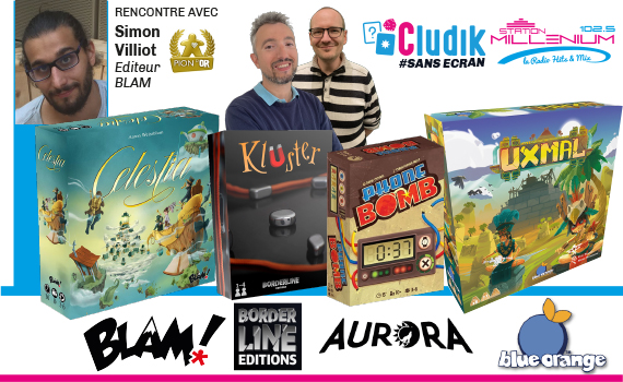 Au programme de l’émission rencontre avec Simon Villiot, responsable de Blam édition, il nous parle de Célestia et du pion d’or entre autre. Célestia est le jeu référence de cette semaine (Blam). Présentation d’un des derniers jeux de chez Blue Orange Uxmal, on parlera également d’un des jeux les plus vendus actuellement qui se joue avec aimants Kluster (Borderline editions) et pour finir Phone Bomb, un jeu semi-coopératif, faites le choix au bon moment (aurora games)
