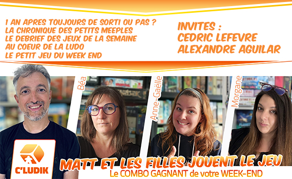 1 an après, toujours de Sorti ou pas avec Béa – La chronique des petits meeples avec Anne-Gaëlle, au programme Miniz Club – 1 jour 1 jeu débrief de la semaine – Au coeur de la ludo avec Morgane – Le petit jeu du week-end : Mouton Mouton.